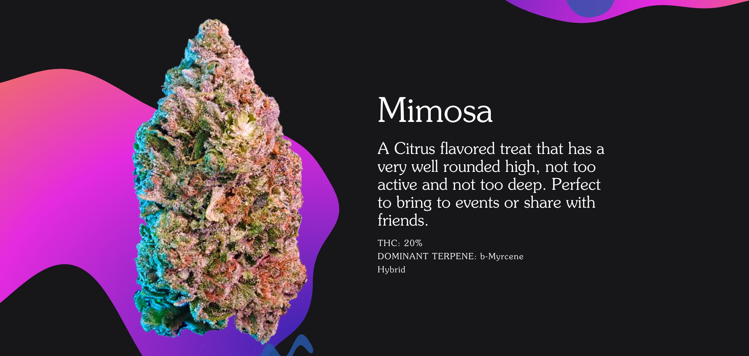 Some great Strange Land strains to pick up from Have a Heart include Banana Punch and Mimosa. Banana Punch has a hazy, tropical flavor with notes of banana and freshly cut pineapple. It gives a mellow calming high, that will relax you from head to toe. Mimosa has a citrusy fruit punch flavor, that’s perfect for relaxed social gatherings. If you’re going to a dinner party and want to be social but chilled out, this Indicia leaning hybrid is a perfect choice.